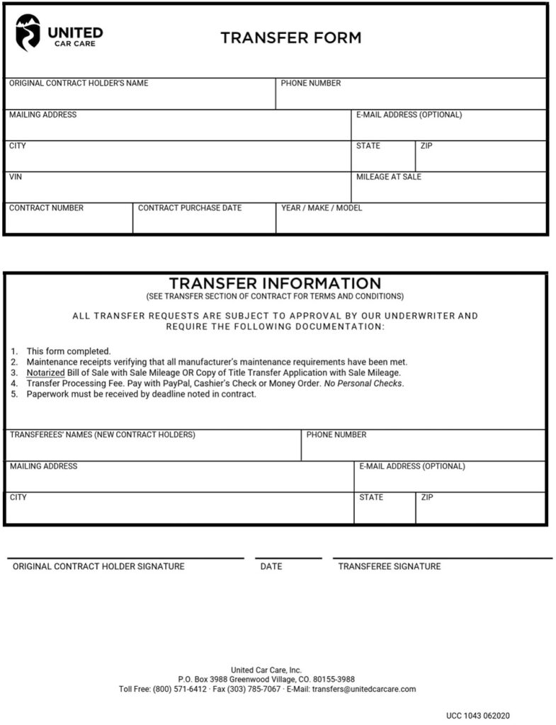 Your contract may be transferrable to another private party when you sell your vehicle. Refer to Section K of your contract to determine whether your contract is transferable. To transfer, you will need to submit all maintenance receipts, a notarized copy of the bill of sale signed by both parties, a transfer fee and a copy of the documents sent to the manufacturer verifying transfer of the factory warranty, if applicable. The transfer must take place within 15 days of change of ownership.